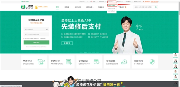 1请务必通过指定链接进入土巴兔平台的商家登录界面,该链接为:https://sz.to8to.com/