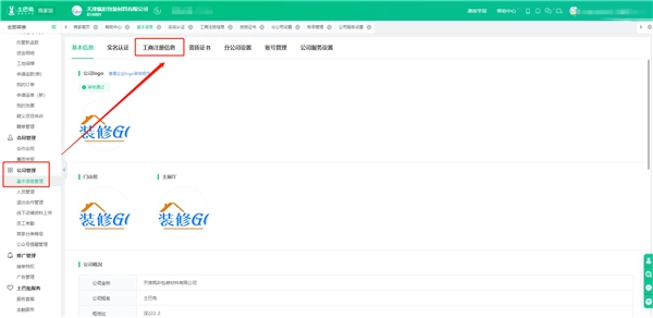 2、找到公司管理-工商注册信息