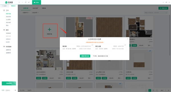 2、点击“我的方案”界面,直接新建方案,系统会弹出项目关联提示。