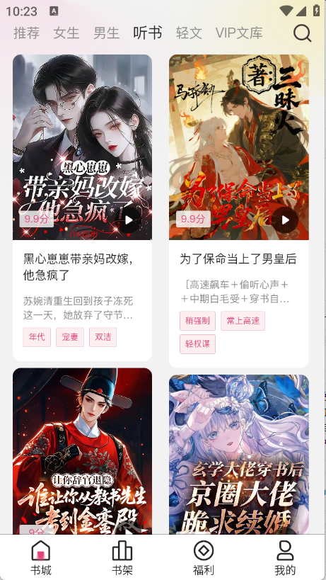 这款小说阅读软件支持关键词精准搜索,听书功能能彻底解放双眼,还可设置定时,睡着也无需担心,尤其适合小说爱好者与深度阅读用户。它的小说更新速度快,章节齐全且题材贴合用户喜好,是一款相当不错的阅读工具。