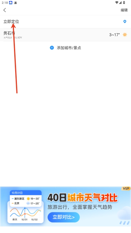 2、在页面点击添加城市/景点