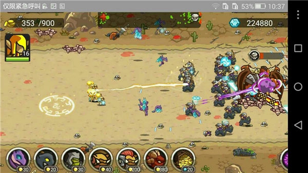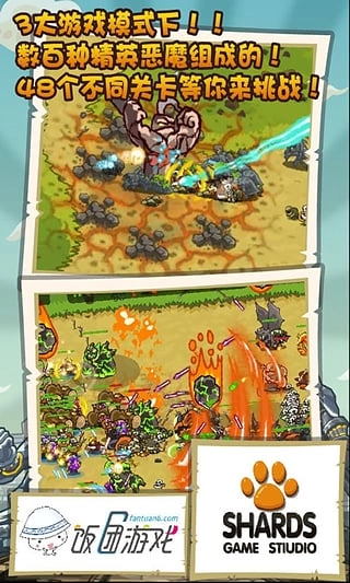 1、打破传统塔防游戏的固定路点布防概念,以整个战场的攻防和兵阵演绎为基础。