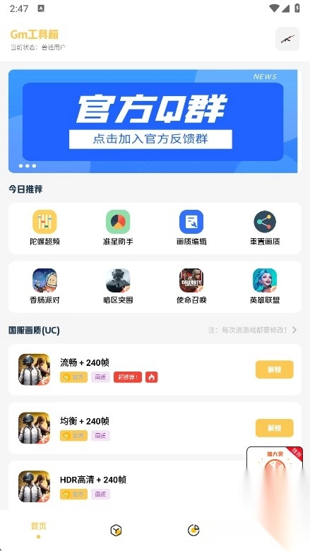 1、在本站安装Gm工具箱并打开,进入后来到首页即可浏览到画质工具