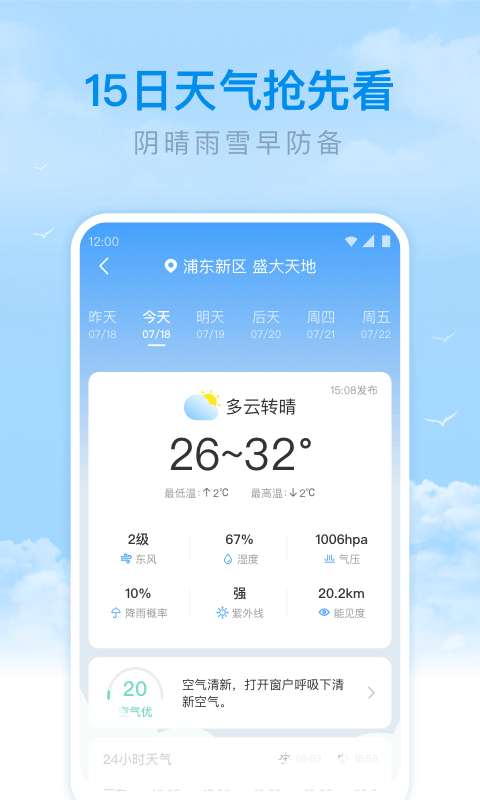 2、智能定位服务:借助定位功能,自动获取用户当前所在位置的天气信息,无需手动输入城市名称。