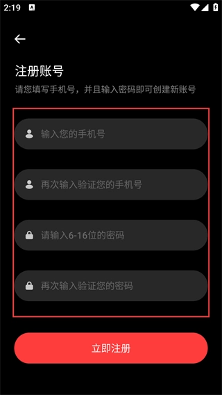 4、进入注册页面后,请按顺序填写【手机号】并完成二次验证,接着设置6-16位的密码并进行二次验证,全部操作完成后点击【立即注册】按钮,就能成功创建账号了。