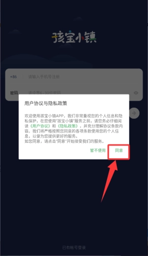 2、在用户协议弹窗界面点击同意后,即可进入账号登录环节。