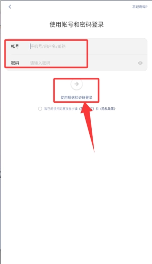 3、登录页支持密码登录或短信验证码两种登录方式。