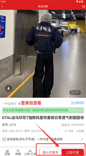 4、进入具体商品页面后,若需要代发服务,直接点击对应的按钮就能完成操作。
