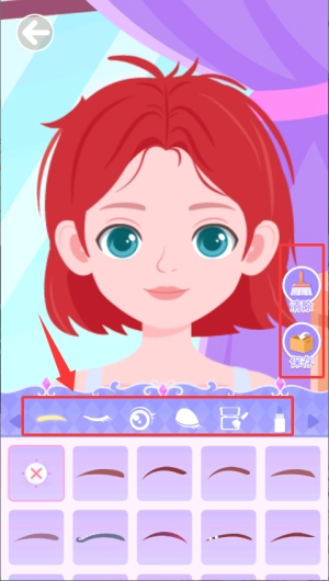 3、在装扮页面从多种选项中自由搭配喜欢的眉形与眼妆等细节。