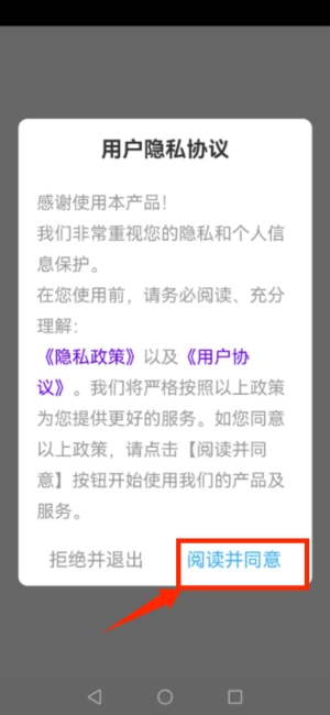 1打开应用程序后,在弹出的隐私协议确认界面选择“已阅读并同意”,随后进入账号登录界面。