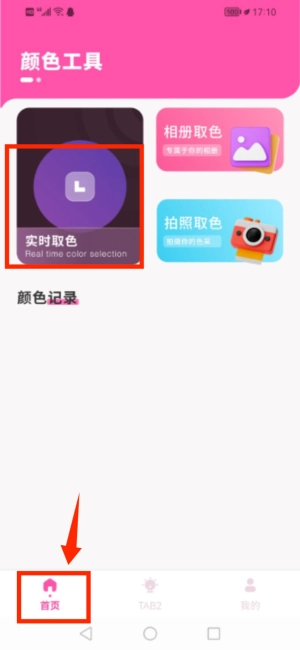 3进入应用主页后,选择即时取色或从相册提取色彩的功能选项,就能启动色彩识别流程。