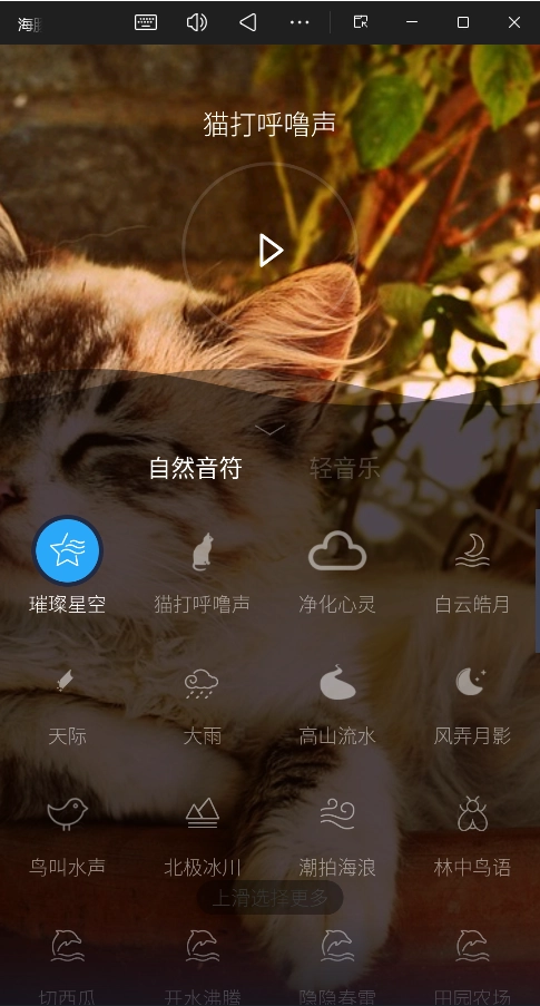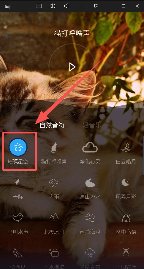 进入“叫我喵”选择喜欢的白噪音或自然音效。