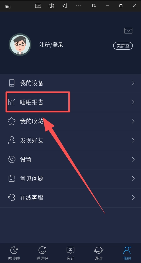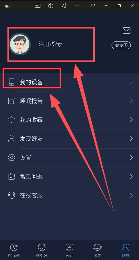 在“我的”中绑定设备(如睡眠监测硬件)。