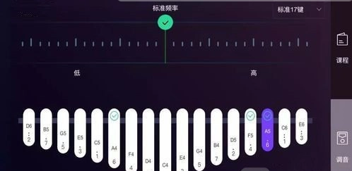1、拇指琴调音的界面,右上角有个切换的功能,可以自由切换标准17音或标准10音(c调)