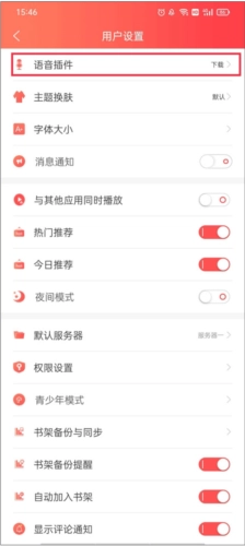 2、进入到用户设置界面,点击第一个语音插件。