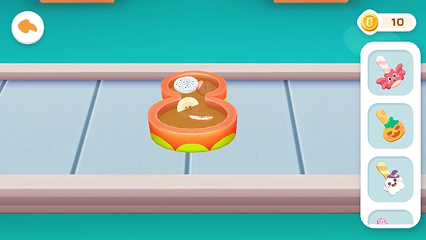 接下来,用户能够依据自身的口味偏好,为冰淇淋挑选心仪的调味料;游戏的右侧设有一个专门的调味料区域,用户可以从中选择宝宝最爱的口味。