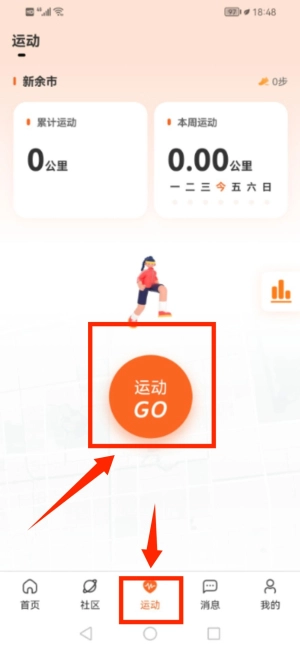 4、进入运动页面后,点击“运动GO”按钮,就能开始记录健身数据了。