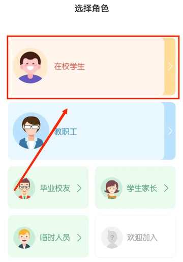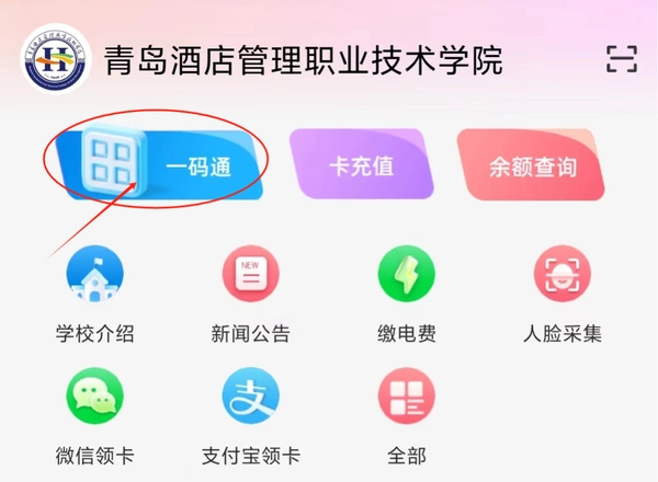 3. 选择“在校学生”入口进入系统后,在首页找到并点击“一码通”功能模块进行卡绑定操作,按要求填写个人相关信息后提交,若收到“绑卡成功”的提示即完成该流程。