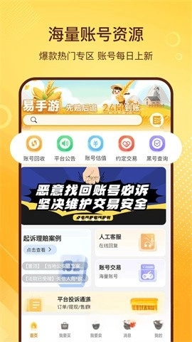 易是武汉烽烟科技有限公司精心打造的游戏交易平台,支持手机游戏、电脑游戏及STEAM平台的各类热门游戏。无论是买卖游戏账号、进行账号回购,还是评估账号价值,它都是安全可靠的选择,可随时随地轻松使用。