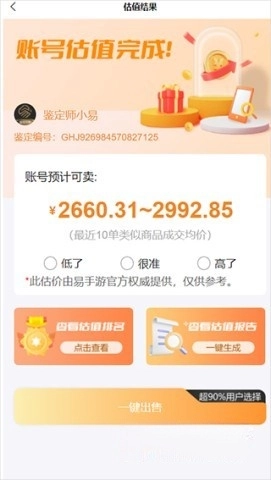 4在账号估值板块选定目标游戏后,系统将依据你勾选的各项内容生成对应的价值评估结果。