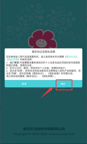 1、首次启动应用,请在服务协议弹窗点击确定进入注册。