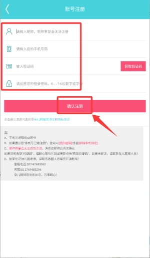2、依次填写昵称、手机号及密码等信息完成账号注册。