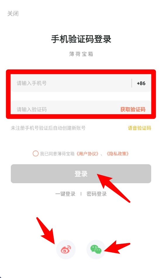 1、支持手机号验证码快速登录,亦可通过微信或微博账号便捷授权登录系统。