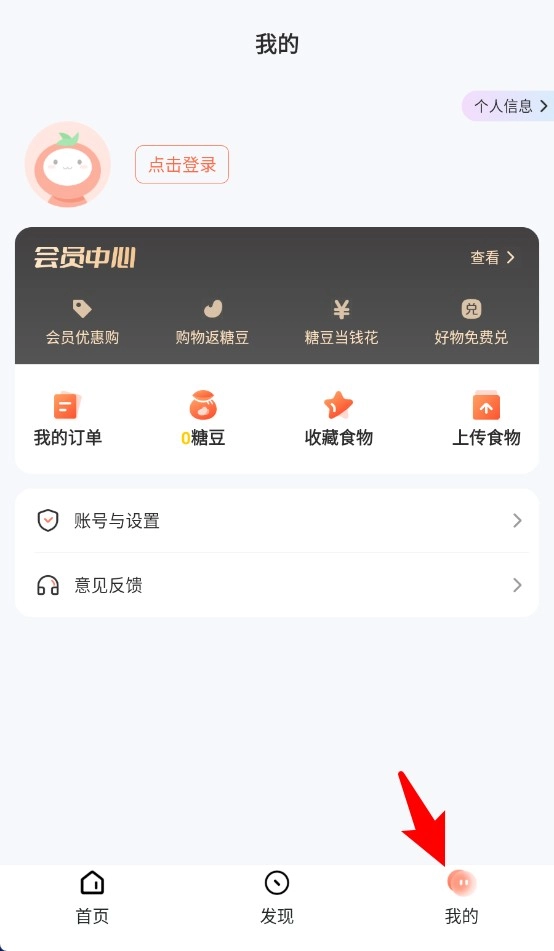 4、我的页面包含订单、收藏、糖豆、账户设置等会员中心相关操作与入口。