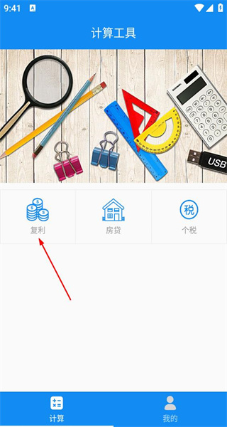 1启动应用程序后,定位到复利相关的功能入口,点击进入该功能对应的计算操作界面。