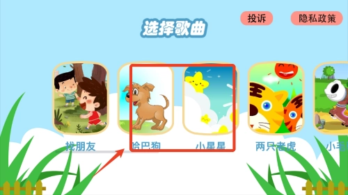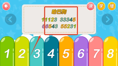1、打开亲亲熊学弹琴后,先选择一首熟悉的儿歌,界面会显示对应的大按键音符,适合宝宝小手点击。