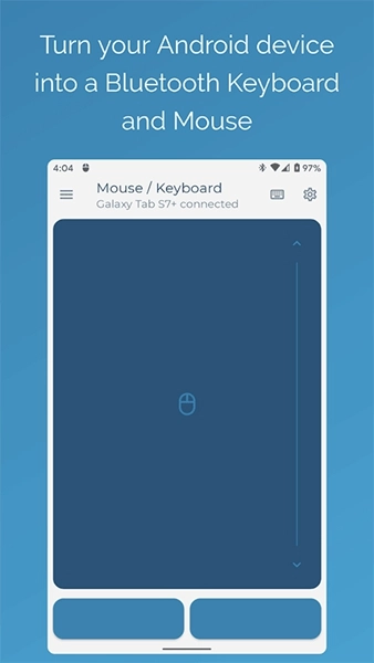 蓝牙键盘鼠标(Bluetooth Keyboard & Mouse)是一款功能强大的远程控制软件,能够将你的智能手机或者平板电脑变成一个实时的无线鼠标和键盘,方便你对自己的电脑进行操控,就像在使用真实的鼠标键盘。软件通过wifi或者蓝牙来进行连接配对,在一定距离内轻松地控制计算机,而不必坐在电脑前。有需要的用户快来看看吧。