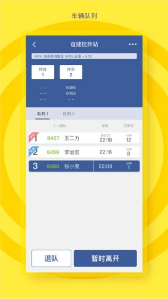 司机驶入排队区域后,可参与排队,也能便捷地完成离场或取消排队的操作。
