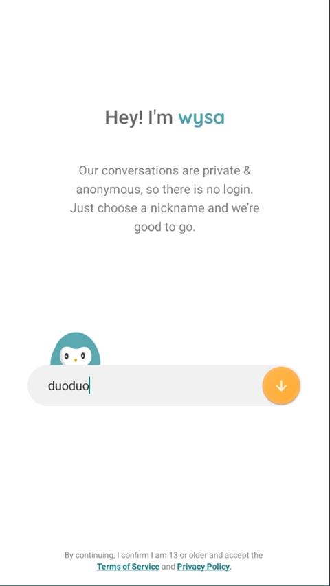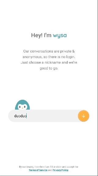 1. 登录Wysa后,为自己选择一个昵称。