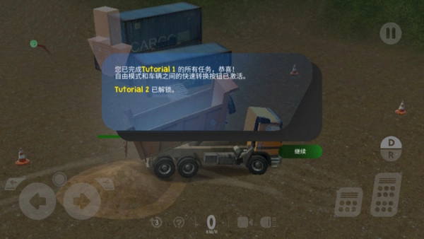 2、进入游戏,第一关是个教程,但也不简单,我们要先把卡车的驾驶学会才行。