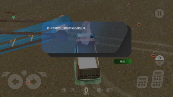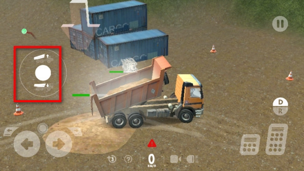 9、此时会出现倾倒泥土的轮盘,我们可以自由操作上下倾倒卡车斗子。