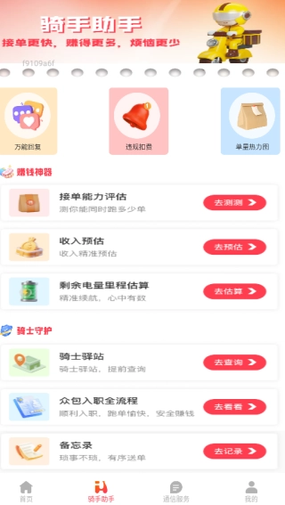 同城跑腿骑士是一款专为骑手设计的实用工具,帮助记录接单时长和数量,方便随时查看工作数据。支持附近充电桩搜索和预约功能,解决电动车充电问题,让跑腿工作更高效省心。当你连续工作过久时,它会提醒适当休息,让接单工作变得更有计划也更轻松。