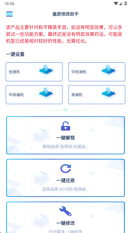 3、你还可以通过一键解锁你想要的画质,或是一键还原等,甚至是针对你的需求进行一键修改;