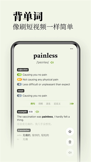 4、灵活强大的 Painless记忆算法,随用随学,轻轻松松背单词。