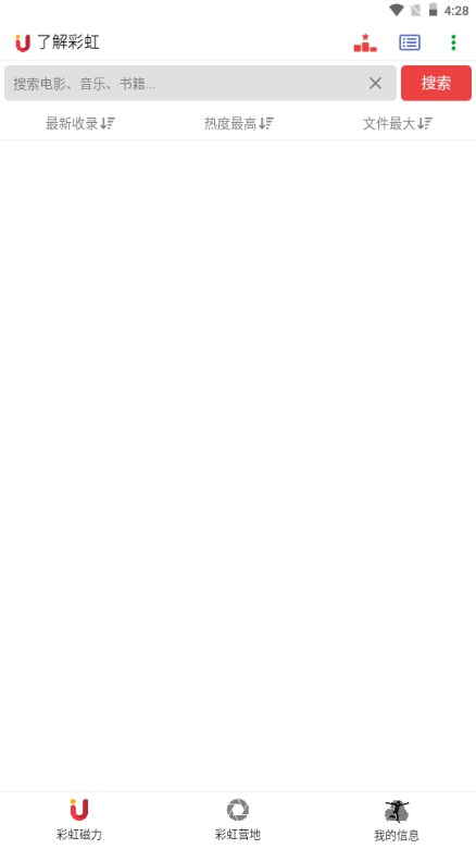 1、首先并安装彩虹磁力,打开后进入主界面,如图所示。