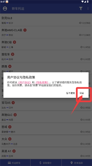 1、打开应用后,请仔细阅读用户协议和隐私政策,确认内容无误后点击同意按钮。