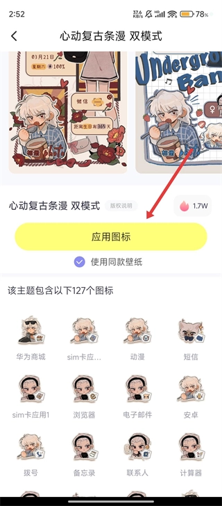 4、点击【应用图标】按钮,即可应用该主题所包含的全部图标资源。