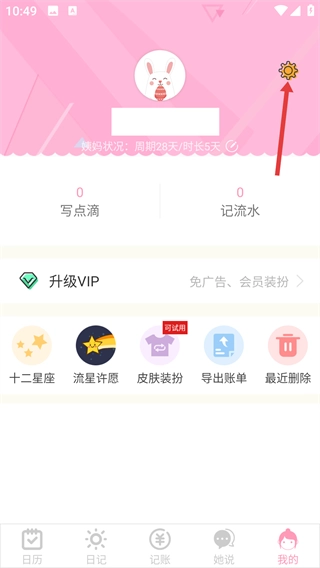 1、打开女生日历App,点击底部的【我的】选项,进入个人中心界面。