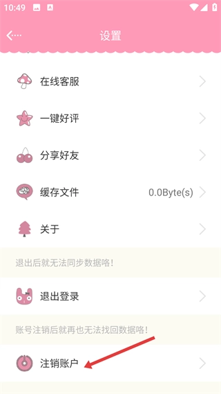 3、打开女生日历的【设置】界面,找到【注销账户】选项并点击它。