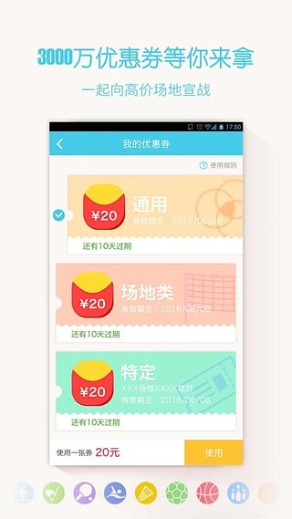 2、运动项目品类丰富齐全,在平台下单能享受专属优惠和返现福利,可满足各类运动爱好者的预订需求。