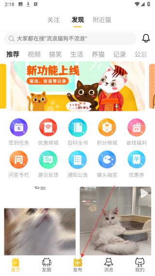 1、进入首页,点击底部【发布】。