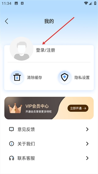 2、进入“我的”页面后,点击“登录/注册”选项,即可进入登录操作界面。