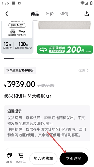 1、打开“商城”页面,在顶部的搜索框里输入投影仪的名称,然后执行搜索操作。