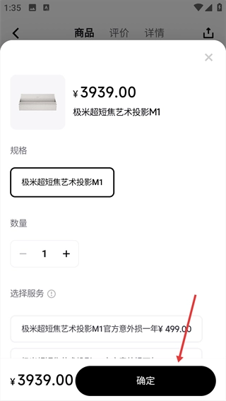 4、确认商品的规格与数量,点击“确定”按钮,即可完成商品购买操作。