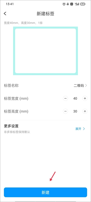 1、在首页点击【新建标签】,同样输入标签名称、标签宽度、标签高度,点击【新建】。