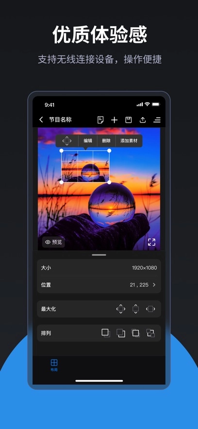 1、操作简单便捷:支持无线连接移动设备,界面直观,一键发布与更改节目,用户操作门槛低。